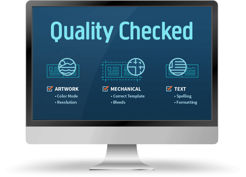 Included with all orders. Before sending you a proof for final approval, we will check the color format, image resolution, and mechanical set up of your file, and alert you of any issues we find.